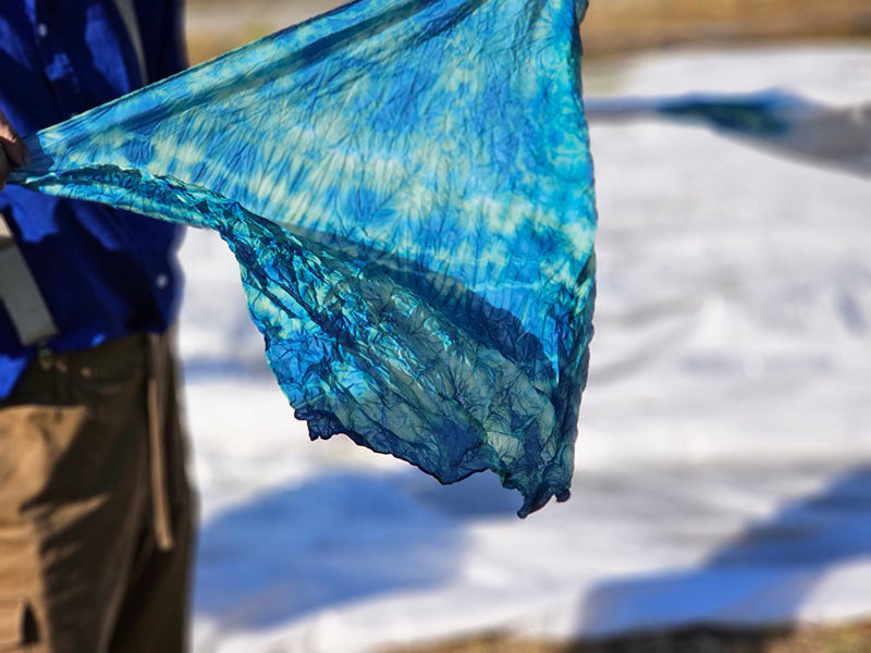 We can do this by utilizing traditional hand dying process which create dynamic color shade. Color shade will vary sensitively by origin of ingredients, dye bath, temperature, time duration and frequency of dipping.